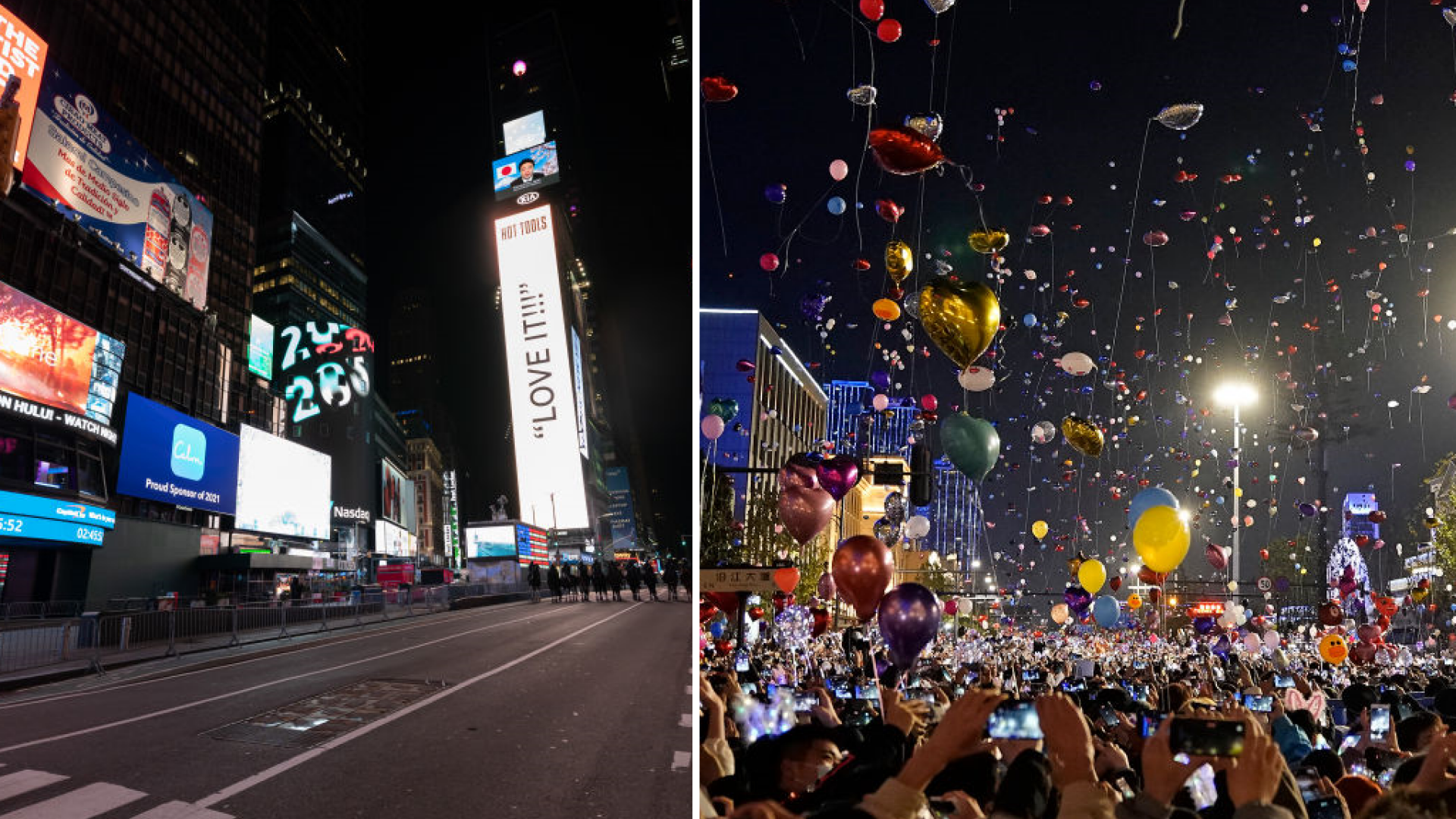 Revelion în contraste: Times Square aproape pustie - Petrecere cu mii de oameni la Wuhan