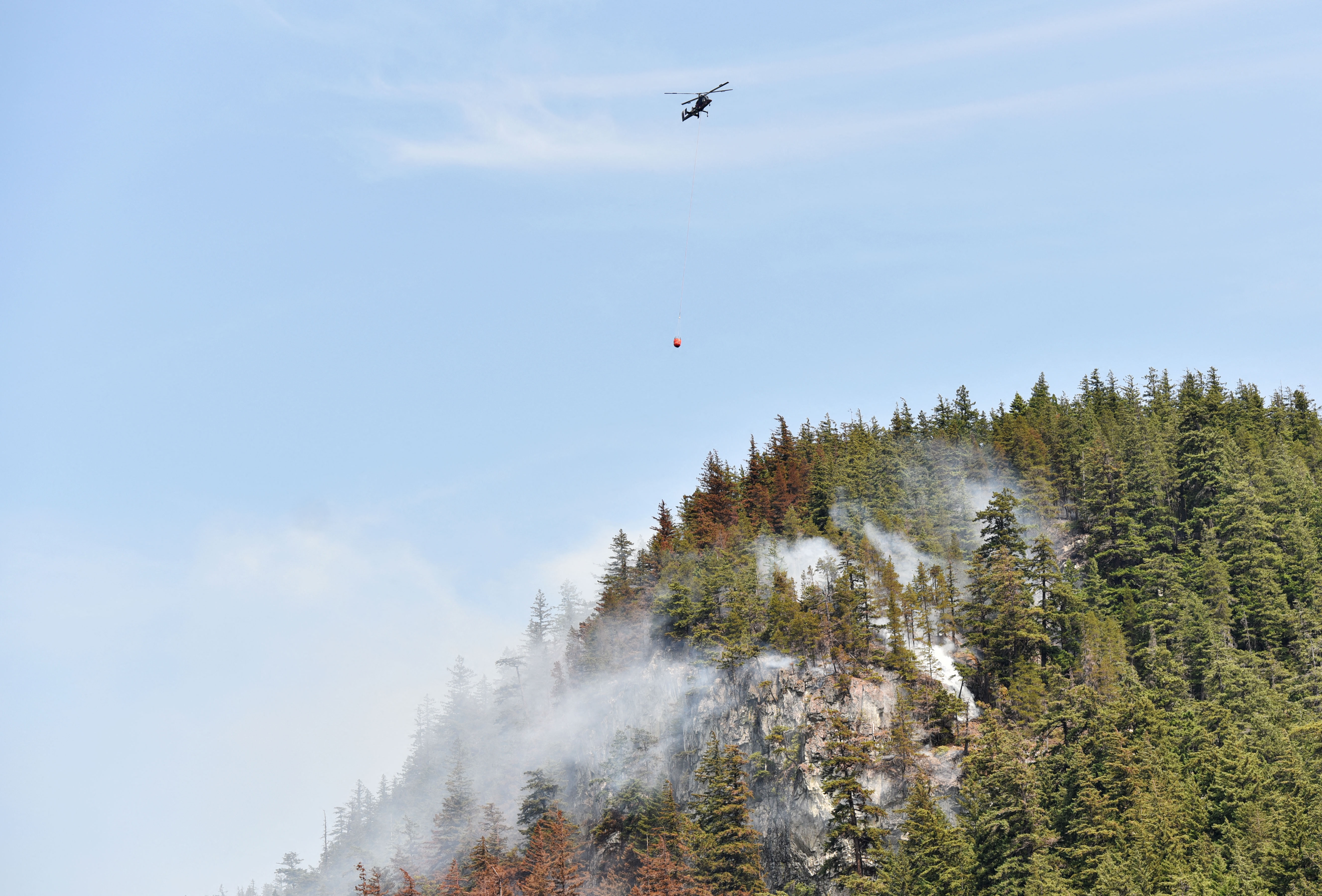 Acest incendiu scăpat de sub control a crescut rapid în ultimele ore şi s-a extins la 20 de hectare, ameninţând districtul Squamish şi 25.000 de locuitori.