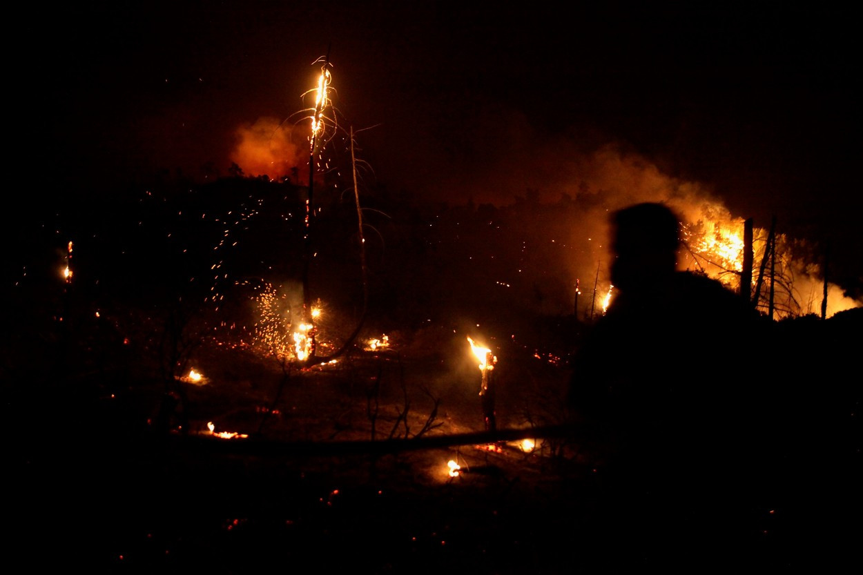 Pe insula Evia, autoritățile le-au spus locuitorilor din patru sate să evacueze locuințele și să se îndrepte spre orașul Karystos, la vest de locul în care se întindea focul.