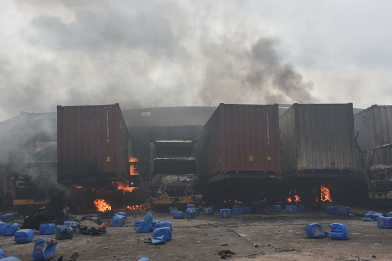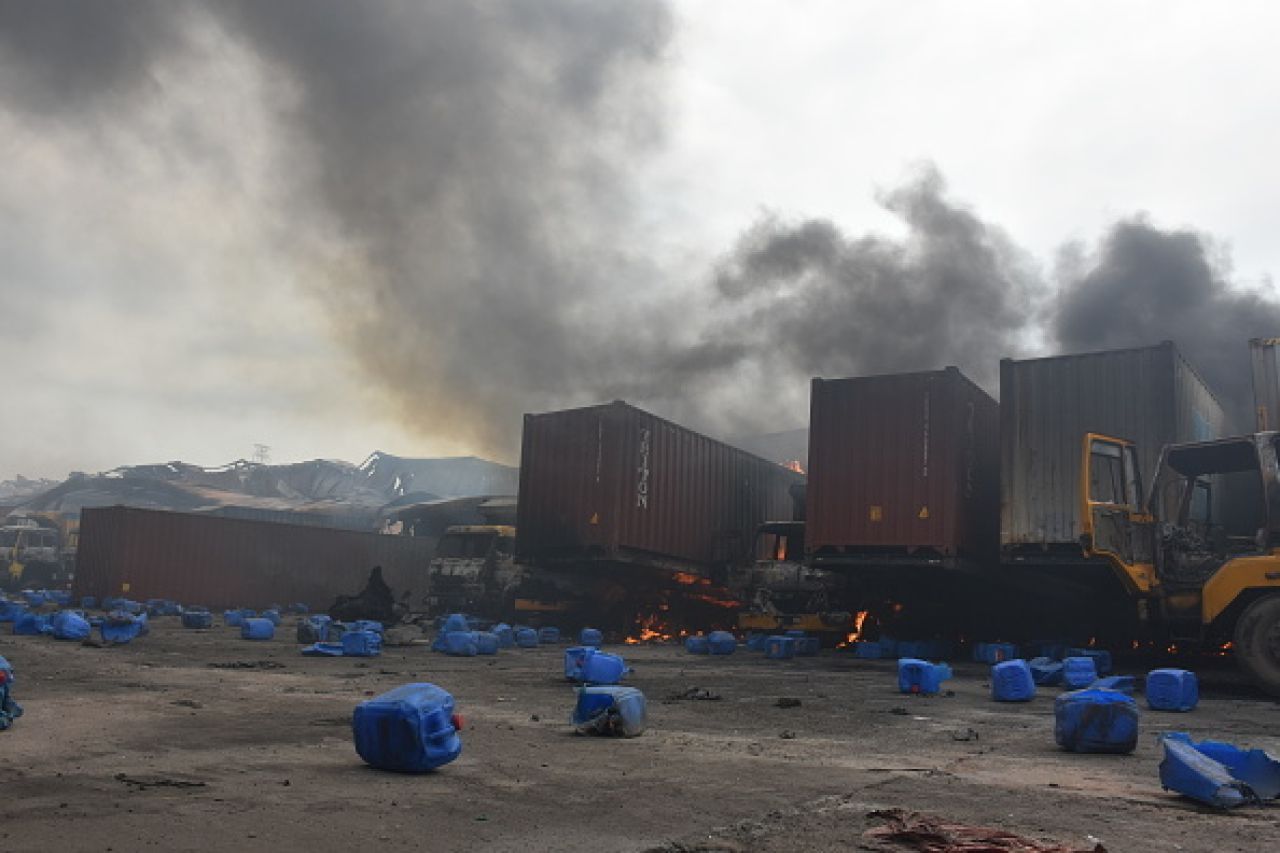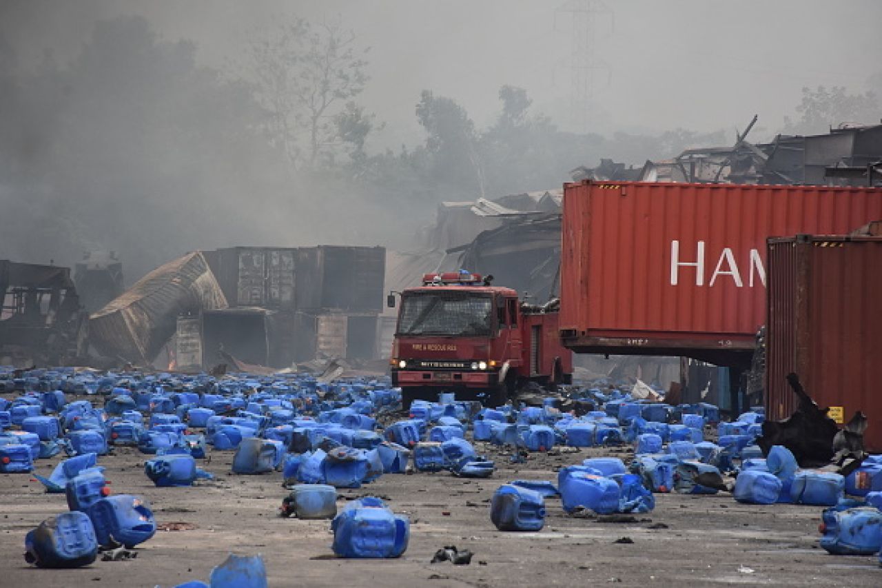 Potrivit pompierilor, în timp ce sute de persoane încercau să stingă focul la o oră după izbucnirea incendiului, mai multe containere cu produse chimice au explodat, provocând numeroşi morţi şi răniţi în rândul salvatorilor.