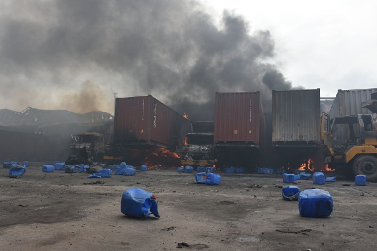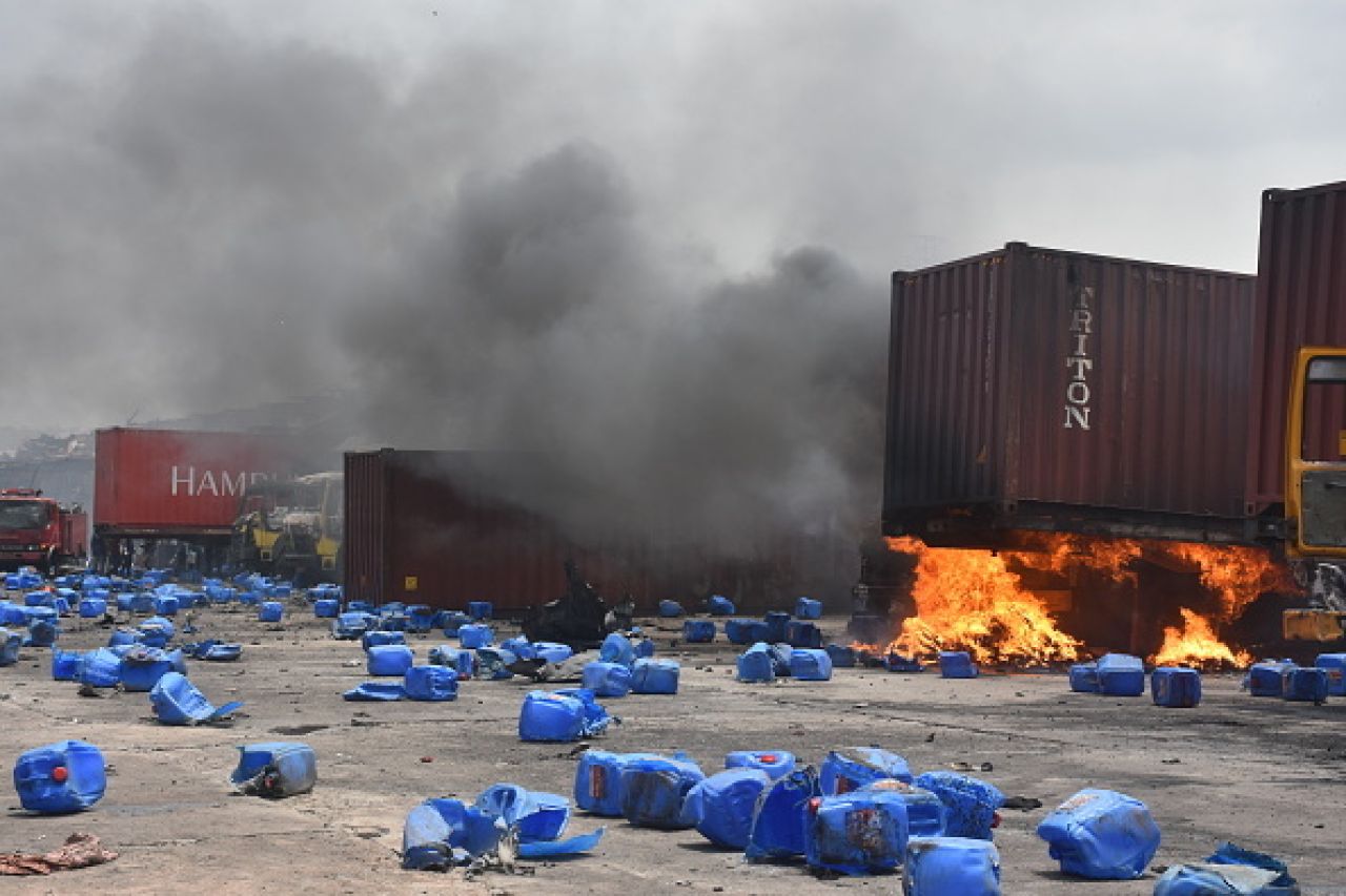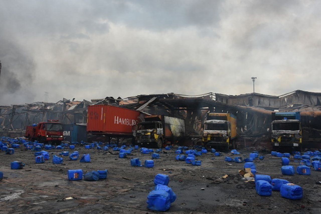 Potrivit pompierilor, în timp ce sute de persoane încercau să stingă focul la o oră după izbucnirea incendiului, mai multe containere cu produse chimice au explodat, provocând numeroşi morţi şi răniţi în rândul salvatorilor.