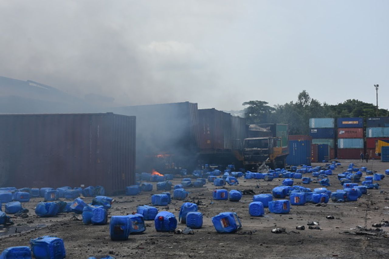 Mai multe containere cu produse chimice au explodat