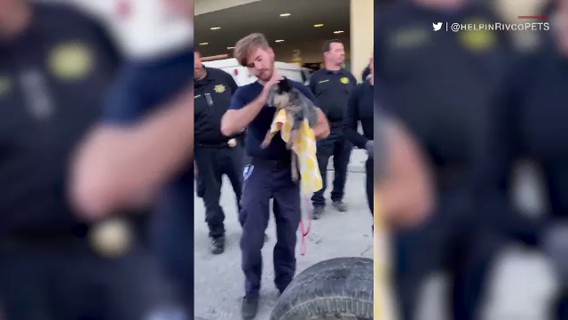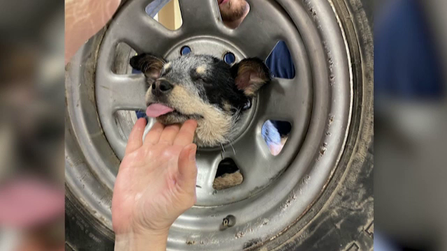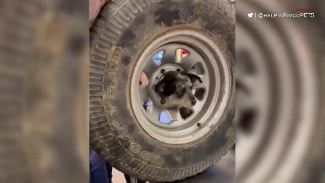 Operaţiune de salvare mai puţin obişnuită pentru un echipaj de pompieri din California. O familie i-a chemat de urgenţă pentru a elibera un căţel care îşi prinsese capul într-o roată de rezervă.