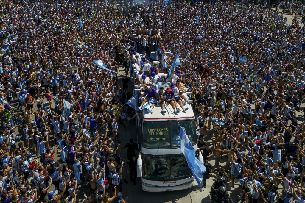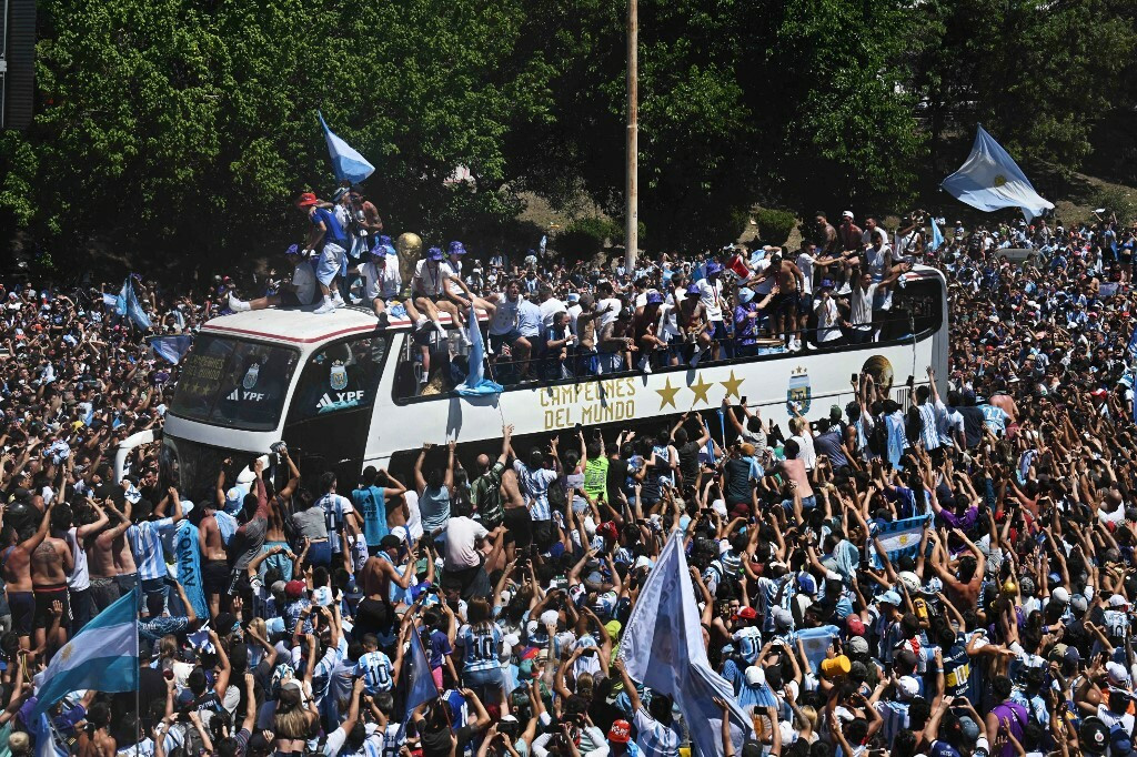 Peste cinci milioane de argentinieni sunt pe străzile din Buenos Aires, aşteptând autocarul descoperit cu Messi şi coechipierii săi.
