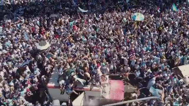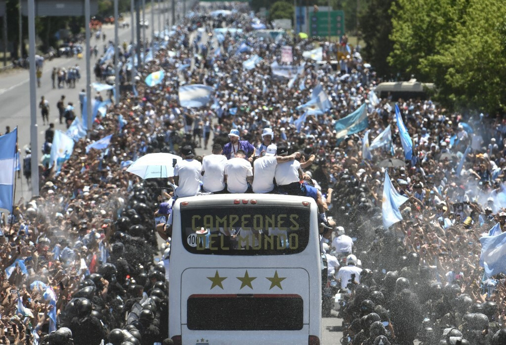 Defilarea campionilor mondiali pe străzile din Buenos Aires a fost presărată de incidente, astfel că serviciile de securitate au decis ca jucătorii să fie urcaţi în elicoptere.