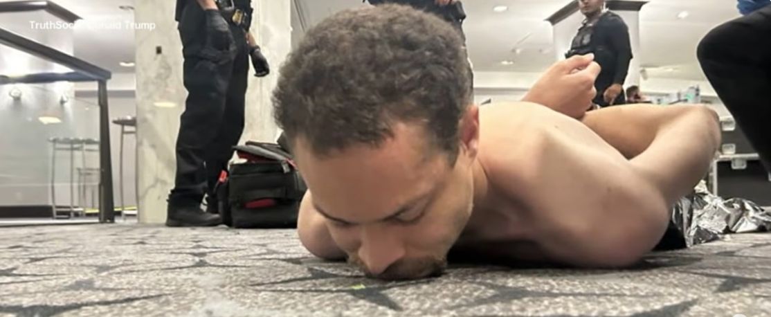 Fotografiile făcute de jurnalişti şi de alte persoane prezente la faţa locului par să-l arate pe Allen la pământ, reţinut într-o zonă a holului lângă toalete, în faţa unei scări care l-ar fi dus în sala de bal.