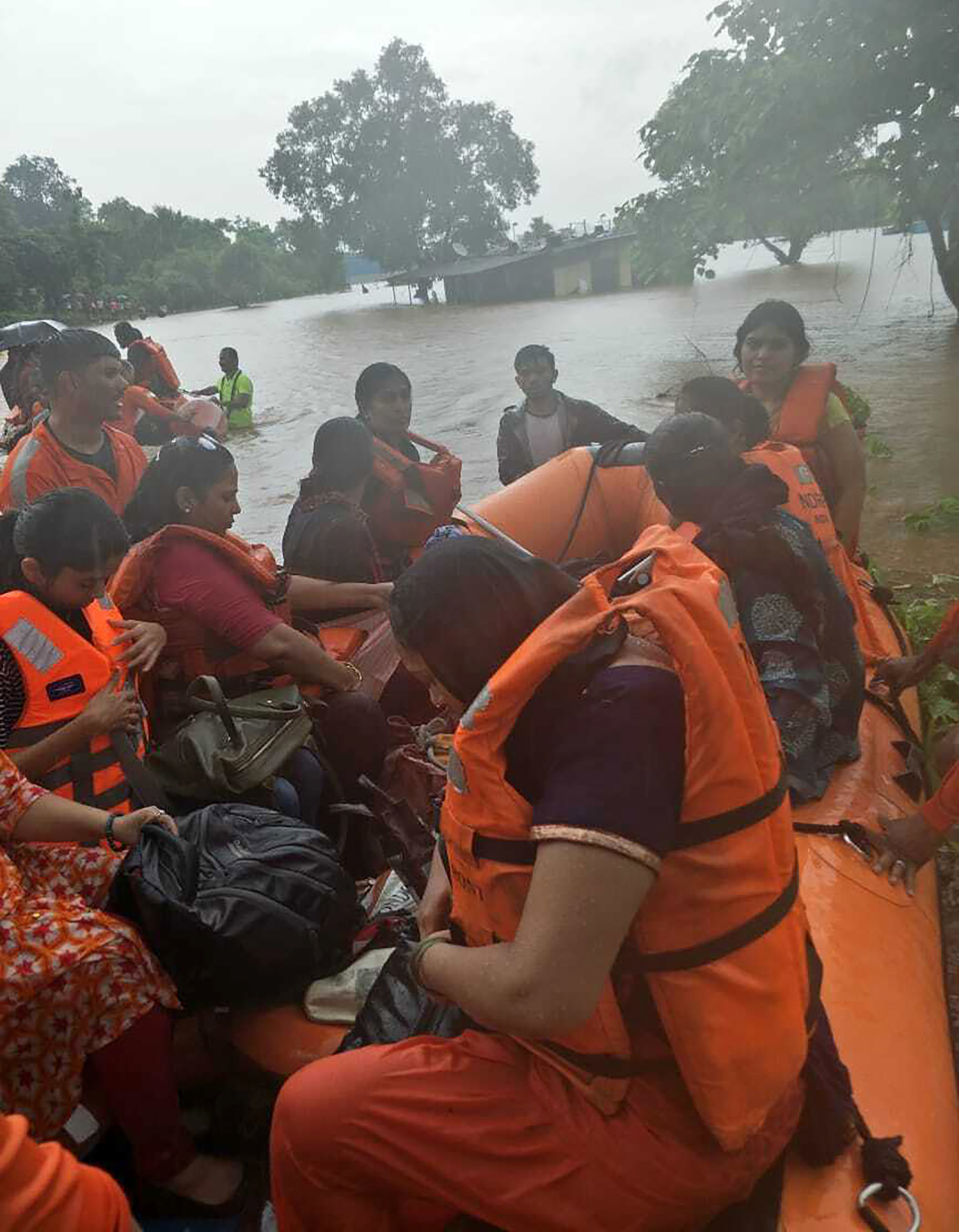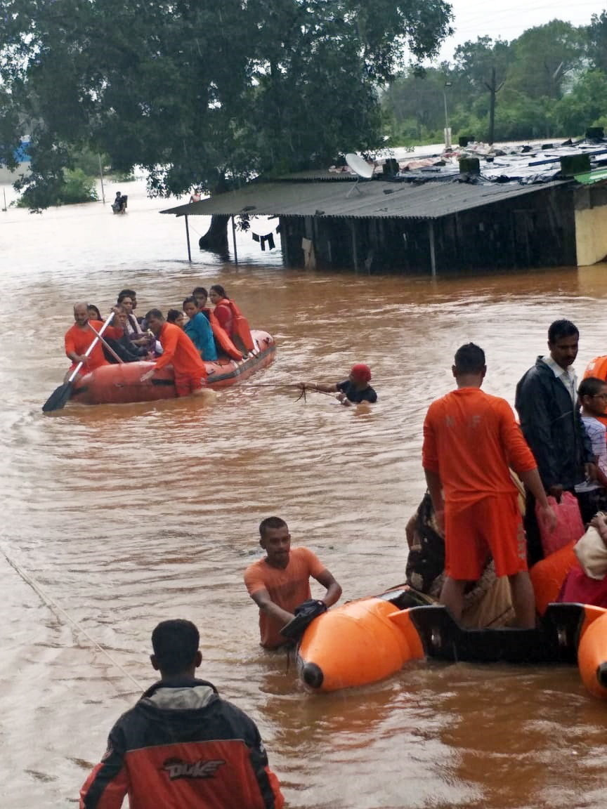 Autorităţile au mobilizat elicoptere şi ambarcaţiuni aparţinând marinei indiene şi Forţei Naţionale de Răspuns în caz de Dezastru (NDRF). Potrivit unui purtător de cuvânt al NDRF, circa 500 de persoane au fost salvate în decursul a două ore.
