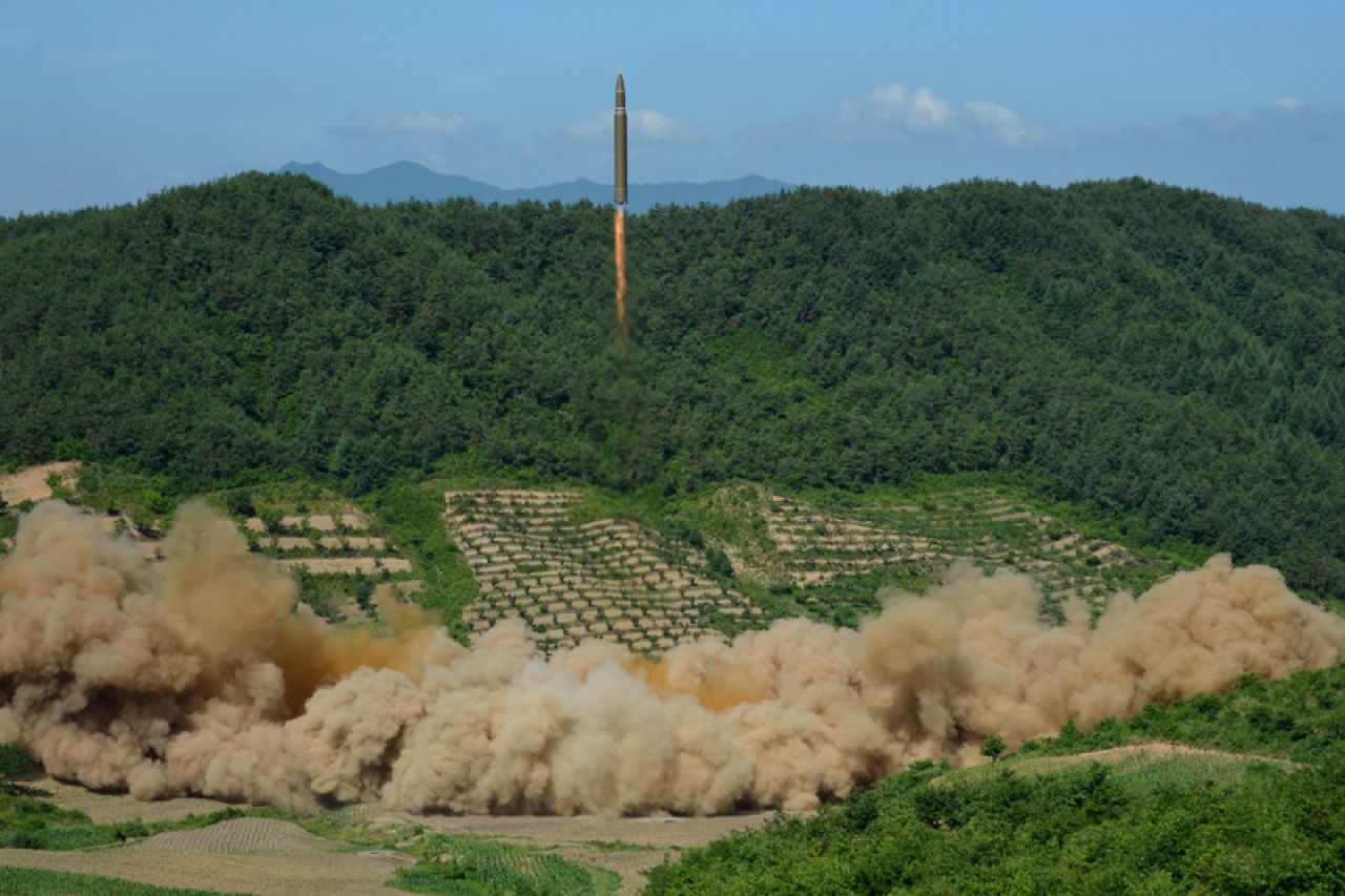 Presa de stat nord-coreeana a anuntat ca racheta, Hwasong-14, a zburat 933 de kilometri distanta, in 39 de minute, si a atins o altitudine de 2.802 kilometri.