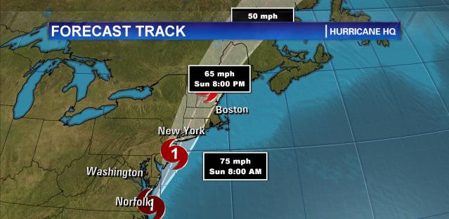 Aceasta traiectorie il aduce direct spre Coasta de Est a Statelor Unite, pe care urmeaza sa o atinga sambata dimineata. Uraganul se va indrepta duminica, spre New York. Aici, "o furtuna extrem de periculoasa", cu rafale de vant de 153 de kilometri pe ora potrivit serviciilor meteorologice americane, ar putea provoca o crestere a nivelului apelor cu trei-patru metri.