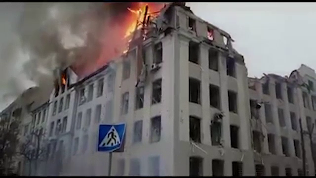 UPDATE 16.54 Un voluntar ucrainean care facea, marți, un video a surprins în timp real cum o rachetă a lovit clădirea Administraţiei Regionale de Stat din oraşul Harkov.