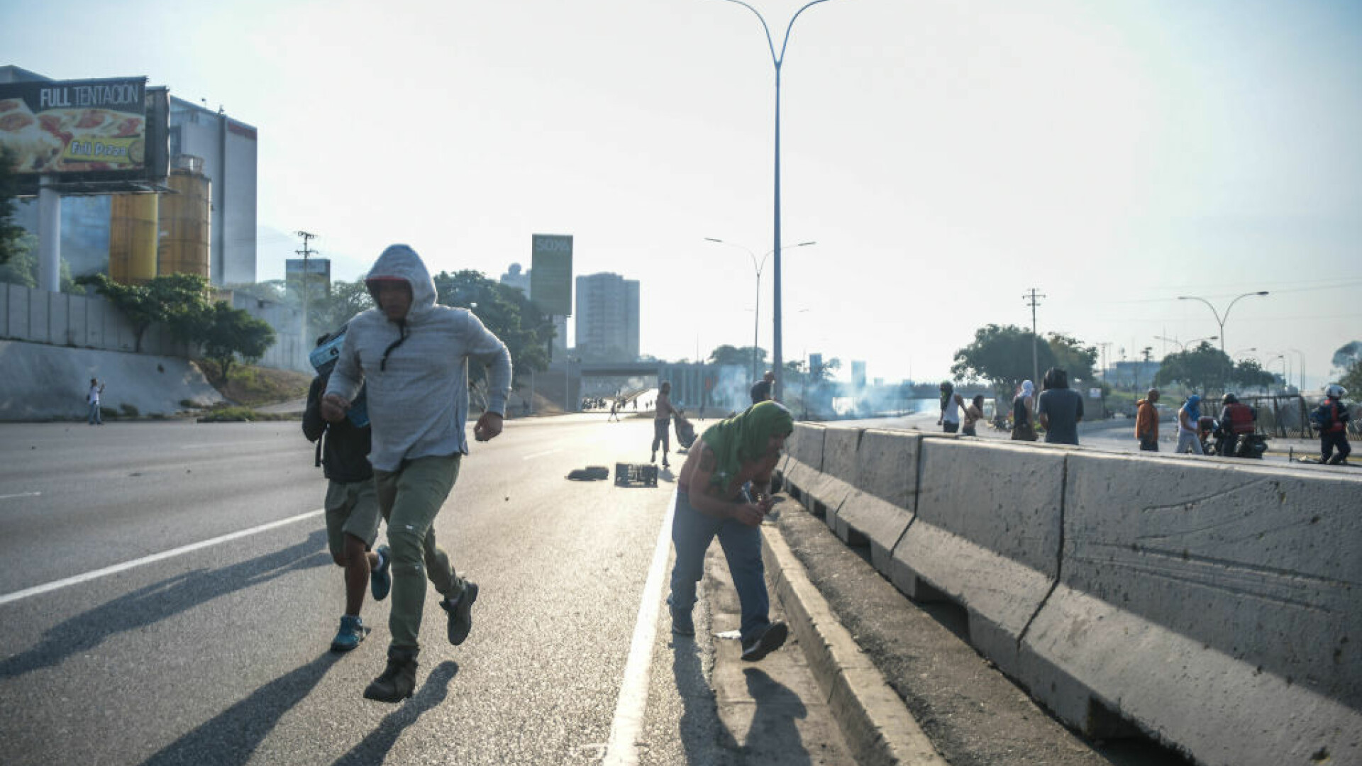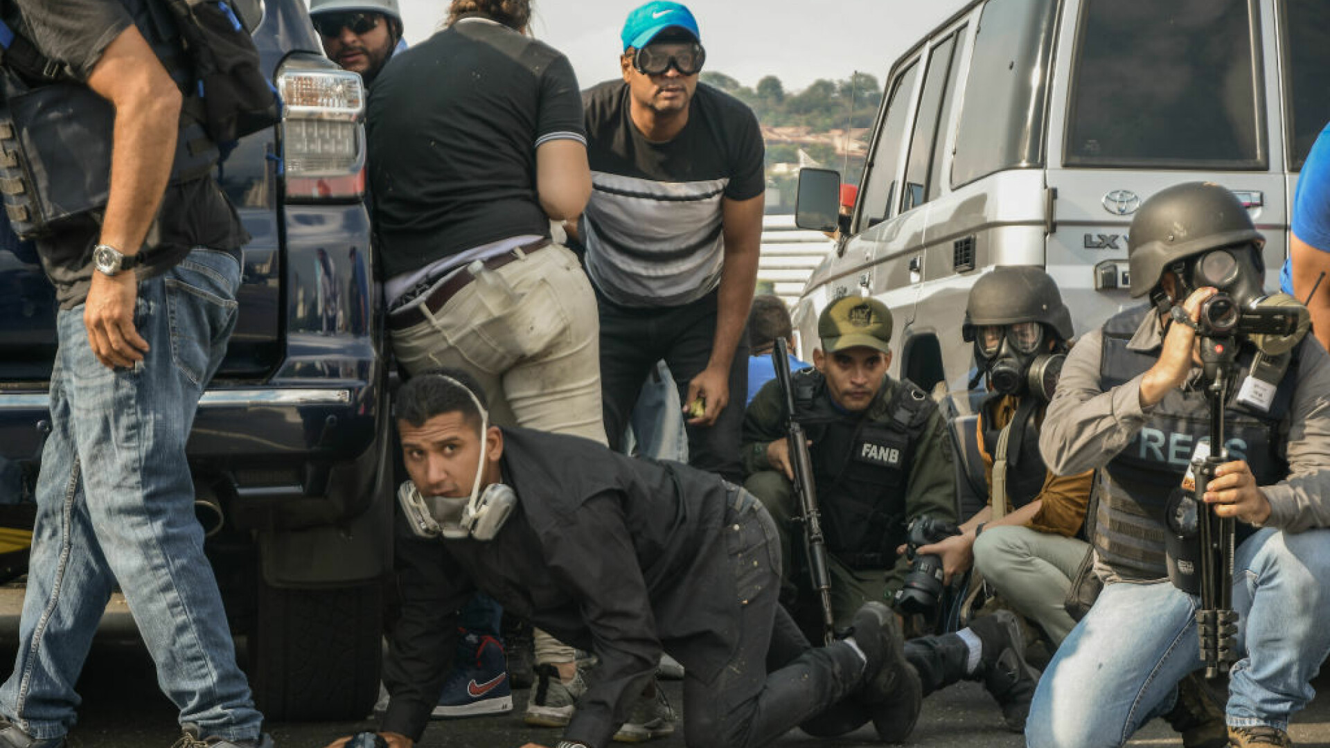 Scenele dramatice s-au petrecut pe străzile din Caracas. Pe imagini se vede cum maşinile armatei intră în plin în mulţimea de protestatari, şi chiar trec peste unii dintre ei. În alte zone ale capitalei Venezuelei, oamenii au aruncat cu cocktailuri Molotov şi s-au auzit focuri de armă trase de ambele părţi.