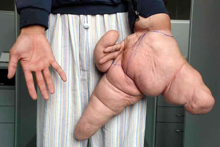 2. Lui Hua are cea mai mare mana din lume, degetul policar masurand 26 de cm. Barbatul sufera de o boala rara numita macrodactilia. Acesta a fost operat in Shanghai in 2007, iar o a doua operatie pentru micsorarea mainii urmeaza sa aiba loc.