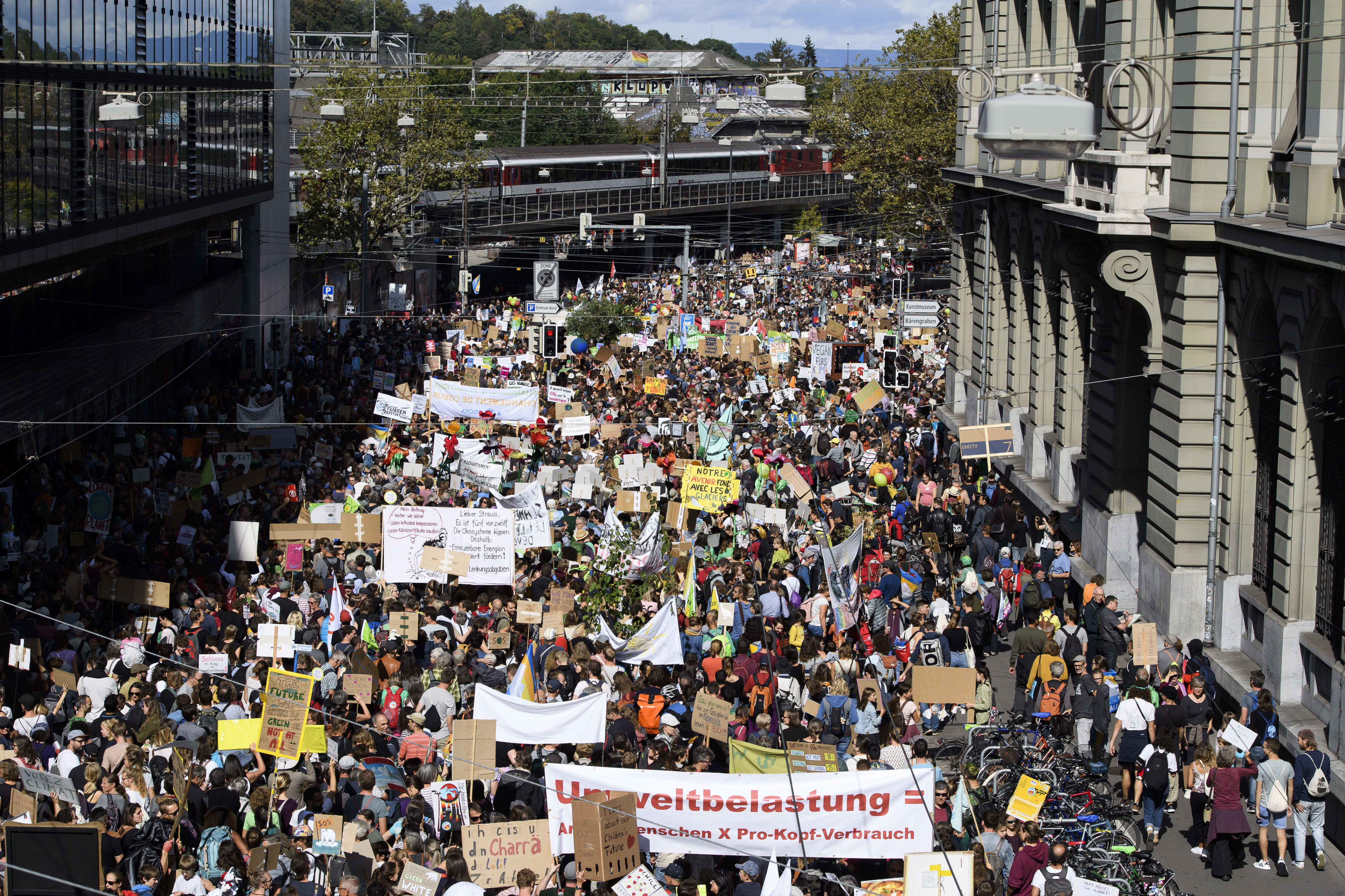 Câteva mii de elveţieni au defilat de asemenea cu o zi înainte, în mai multe oraşe din ţară, în cadrul „grevei mondiale pentru climă”, însă s-au adunat în număr mai mare, sâmbătă, la „manifestaţia naţională” organizată la Berna de Alianţa pentru Climă din Elveţia, care reuneşte 80 de organizaţii din societatea civilă.