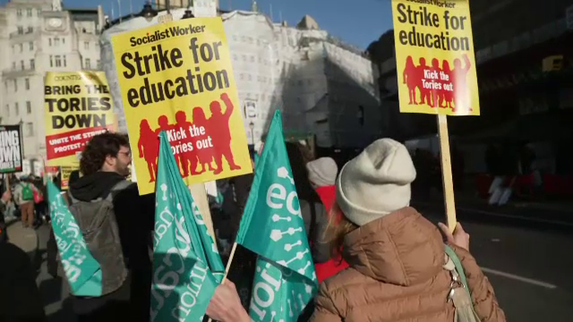 Din Franța, grevele s-au mutat, miercuri, dincolo de Canalul Mânecii, în Marea Britanie. Profesori din școli, licee și universități, lucrători feroviari și funcţionari publici, toţi au mărșăluit pe străzile marilor orașe, că să ceară salarii mai mari.