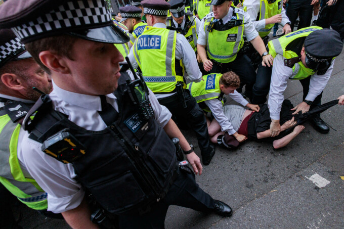 Poliția a instituit o zonă de dispersare, iar ofițerii au primit ordinul de a muta grupurile sau indivizii care provoacă „hărțuire, alarmă sau stres pentru alții". O femeie în vârstă de 37 de ani a fost arestată în oraș sub suspiciunea că a agresat un lucrător de urgență, a declarat poliția din Avon și Somerset, în timp ce în Liverpool au avut loc 11 arestări pentru infracțiuni, inclusiv beție și dezordine, agresiune și ultraj, în timp ce un protest al Partidului Independenței Regatului Unit a fost întâmpinat de o contramanifestație.
