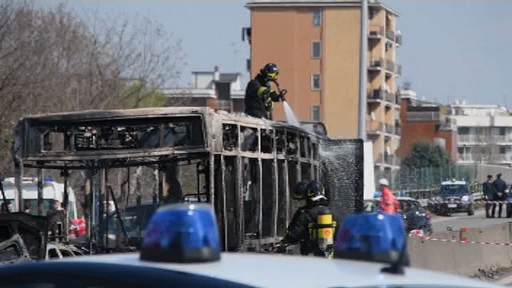 Carabinierii au blocat autobuzul în trafic, pe autostradă, la0 de kilometri de Milano. Şoferul a turnat pe jos un lichid inflamabil şi i-a dat foc. Carabinierii au intervenit în forţă, au spart un geam din spate, l-au imobilizat pe agresor şi au reuşit să evacueze toţi pasagerii. Câţiva au avut nevoie de îngrijiri medicale, dar niciunul are răni grave,