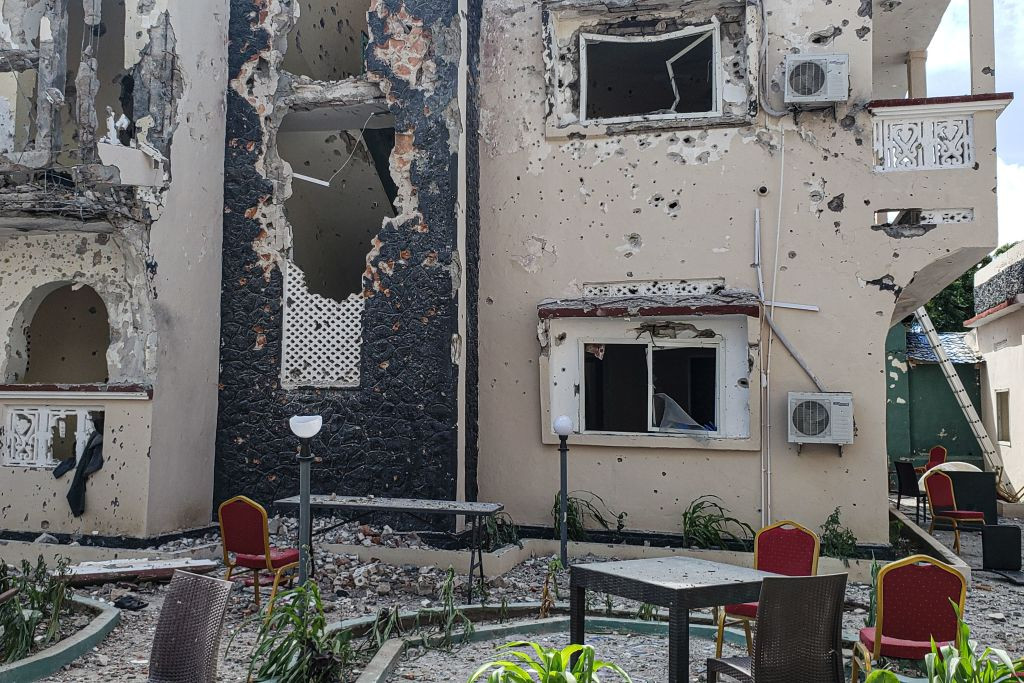 Atacatori înarmaţi au luat cu asalt hotelul vineri, după un atentat sinucigaş în interiorul clădirii, apoi indivizii s-au baricadat în hotel, a declarat ofiţerul de poliţie Mohamed Hussein, care a adăugat că cinci dintre ei au fost ucişi în asaltul care a urmat. Un alt oficial local a menţionat că este posibil ca mai mulţi atacatori să fi scăpat în timpul asediului.