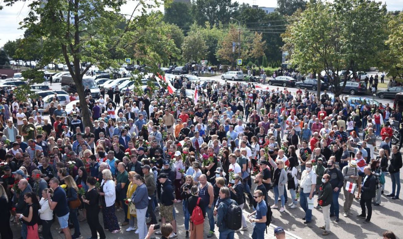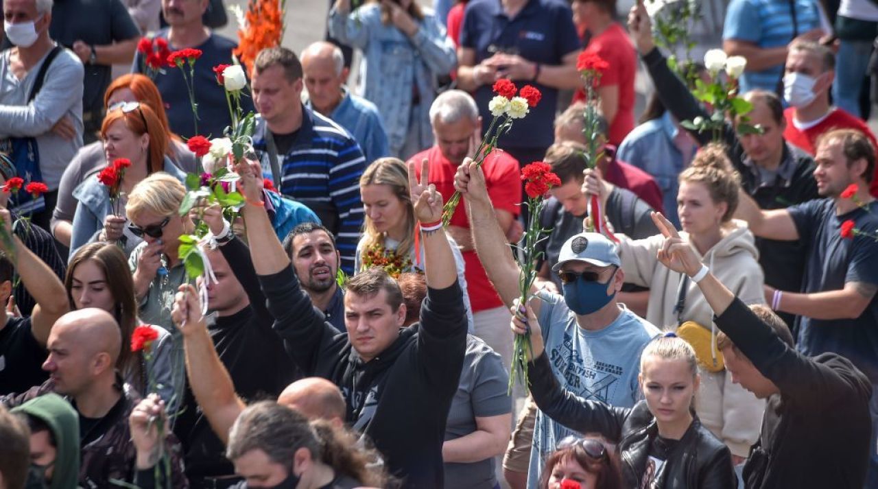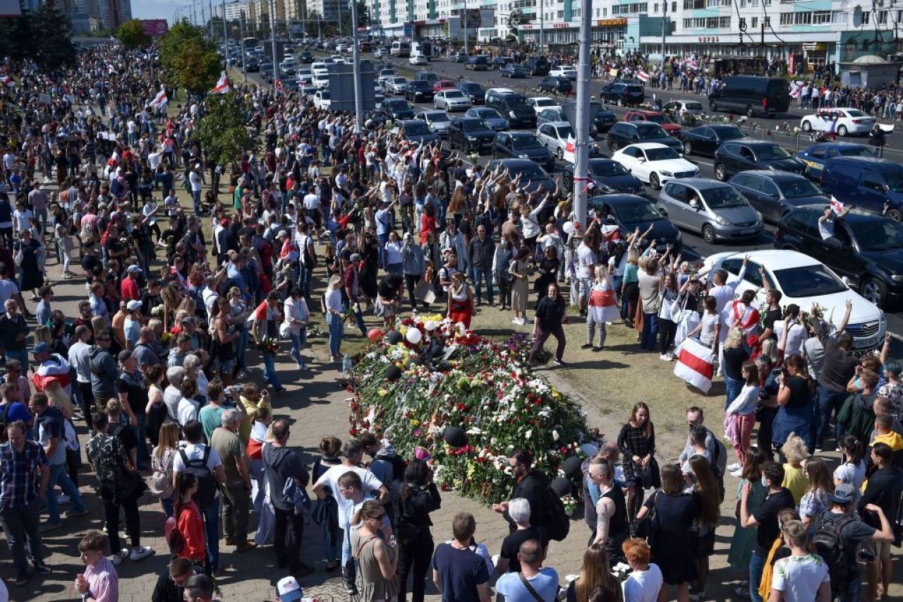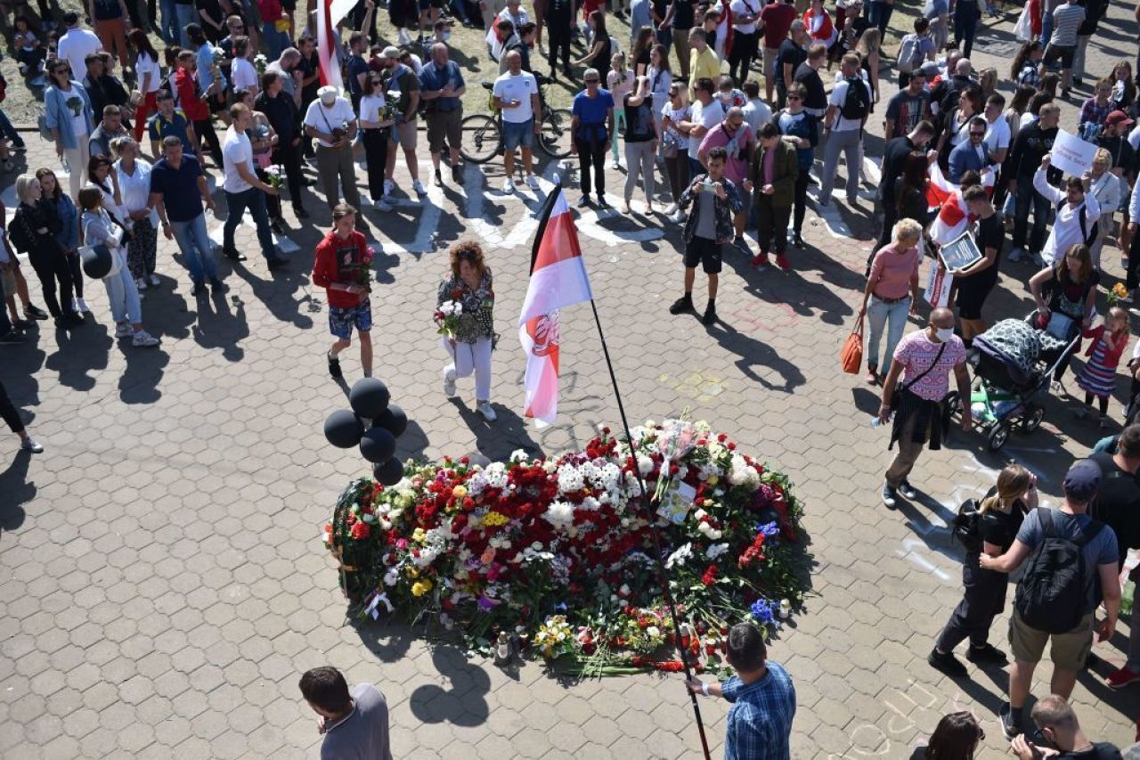 Mii de oameni se îndreptau spre staţia de metrou Puşkinskaia, la vest de centrul oraşului Minsk, pentru a aduce un omagiu unui manifestant mort în apropiere, în timpul unei demonstraţii ce a avut loc luni.