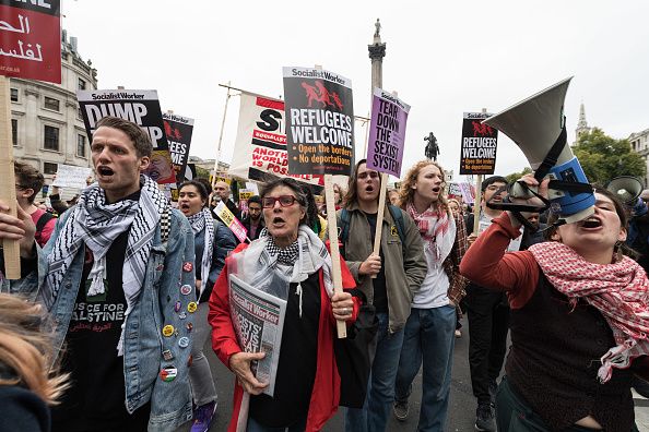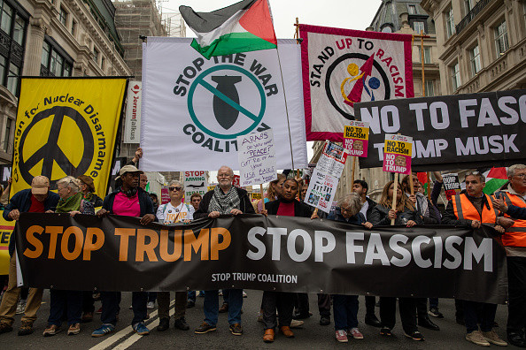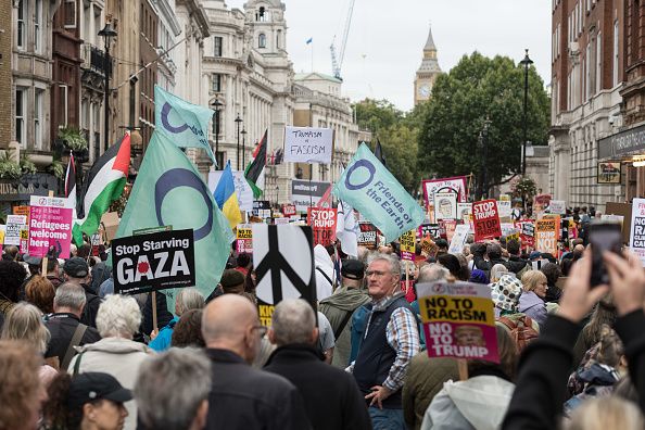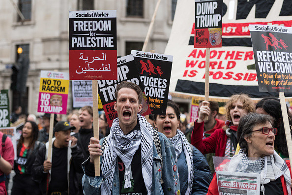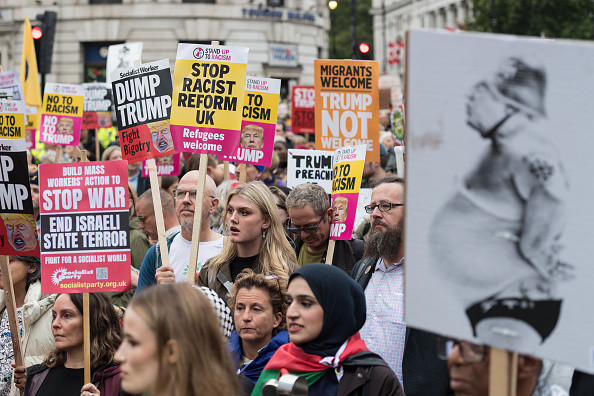 "Migranţii sunt bineveniţi, Trump nu este binevenit", "Nu rasismului, nu lui Trump", "Să bombardăm copii în Gaza şi să celebrăm în Regatul Unit" - au fost unele dintre mesajele de pe pancartele manifestanţilor.