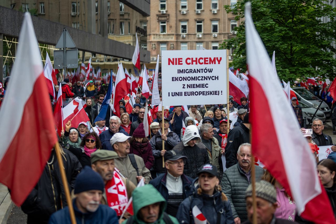 Ei au scandat "toţi împreună împotriva fascismului", afişând steaguri în culorile curcubeului şi pancarte împotriva partidului, care a obţinut 20% din voturi la ultimele alegeri legislative.