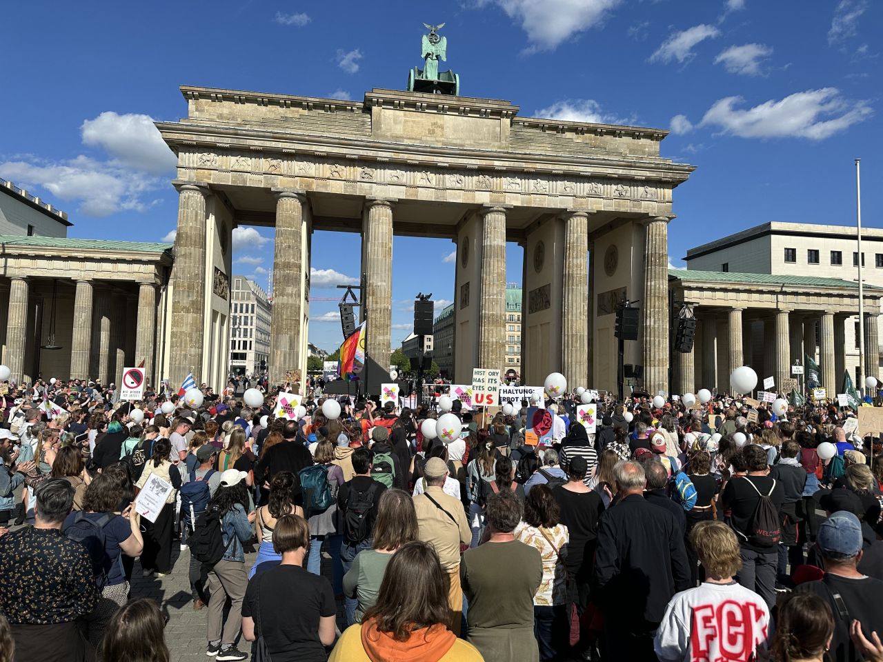 La Berlin, mitingul de la emblematica Poartă Brandenburg a atras în cursul după-amiezii peste 7.000 de oameni, conform organizatorilor, sau 3.000, conform poliţiei.