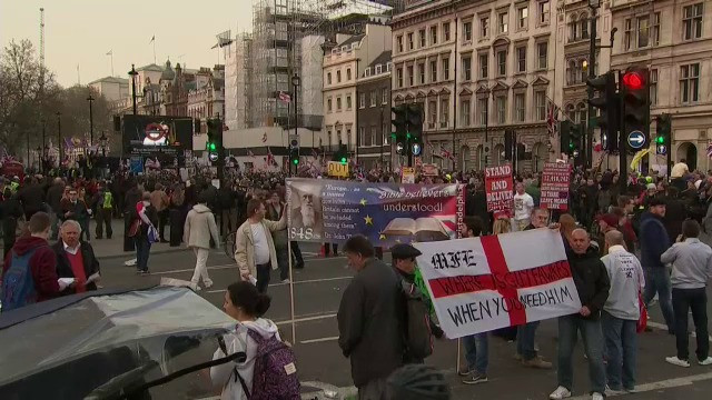 De cealaltă parte a eşicherului politic, activişti pro-Brexit au încheiat ultima etapă a unui îndelungat marş, de aproximativ 450 de kilometri, din nordul Angliei, şi au ajuns la Londra.