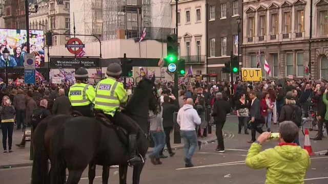 ”Ce vrem? Brexitul. Când? Acum”, scandau activişti eurosceptici, agitând steaguri britanice şi urlând ”Ruşine să vă fie!” adesându-se deputaţilor.