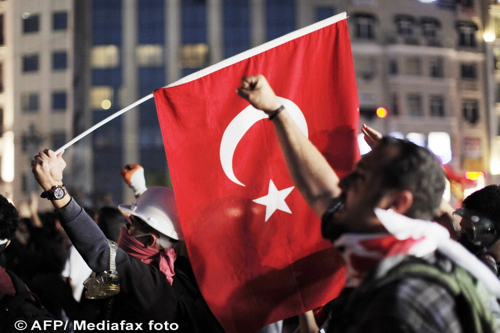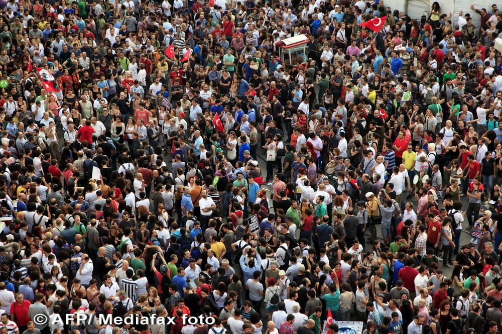 Reuniti la apelul grupului Solidaritate Taksim, principalul coordonator al frondei lansate pe 31 mai, manifestanti au infruntat timp de doua ore un impozant cordon de politisti antirevolta, care le bloca accesul in piata, scandand sloganuri ca "Guvernul, demisia" sau "Impotriva fascismului, cu totii".