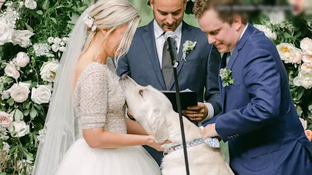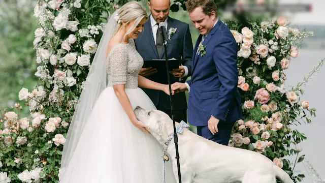 Moment inedit la nunta unui cuplu din SUA. Câinele mirilor a fost cavaler de onoare | GALERIE FOTO