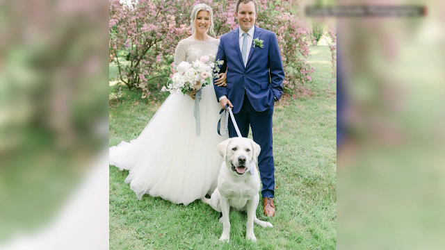 Mireasa mărturisește totuși că a avut mari emoții de teamă că blănosul i-ar putea distruge rochia. Dar nu a fost cazul, deoarece câinele a fost bine controlat de mire.