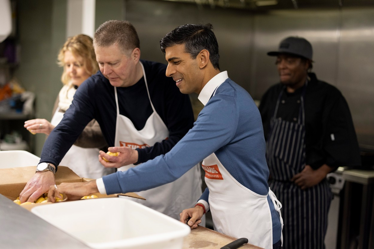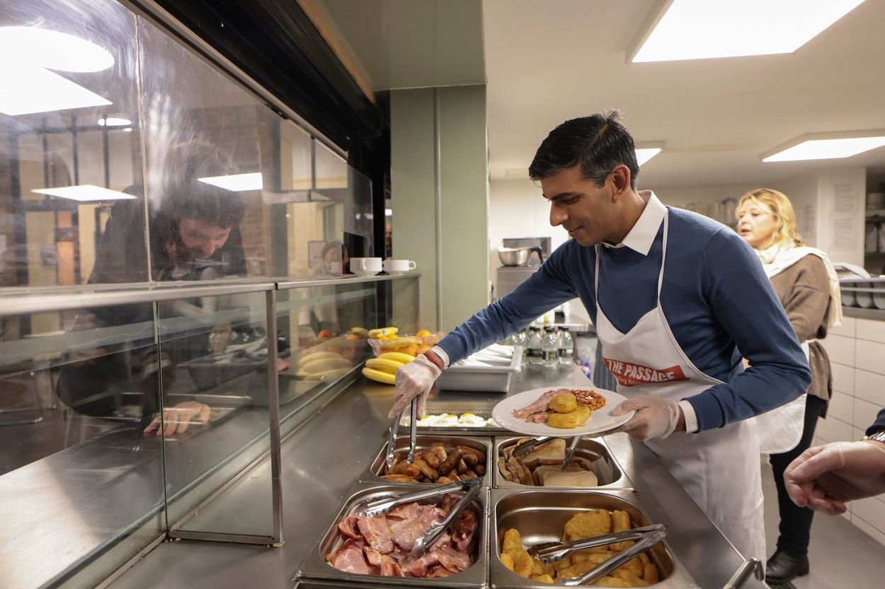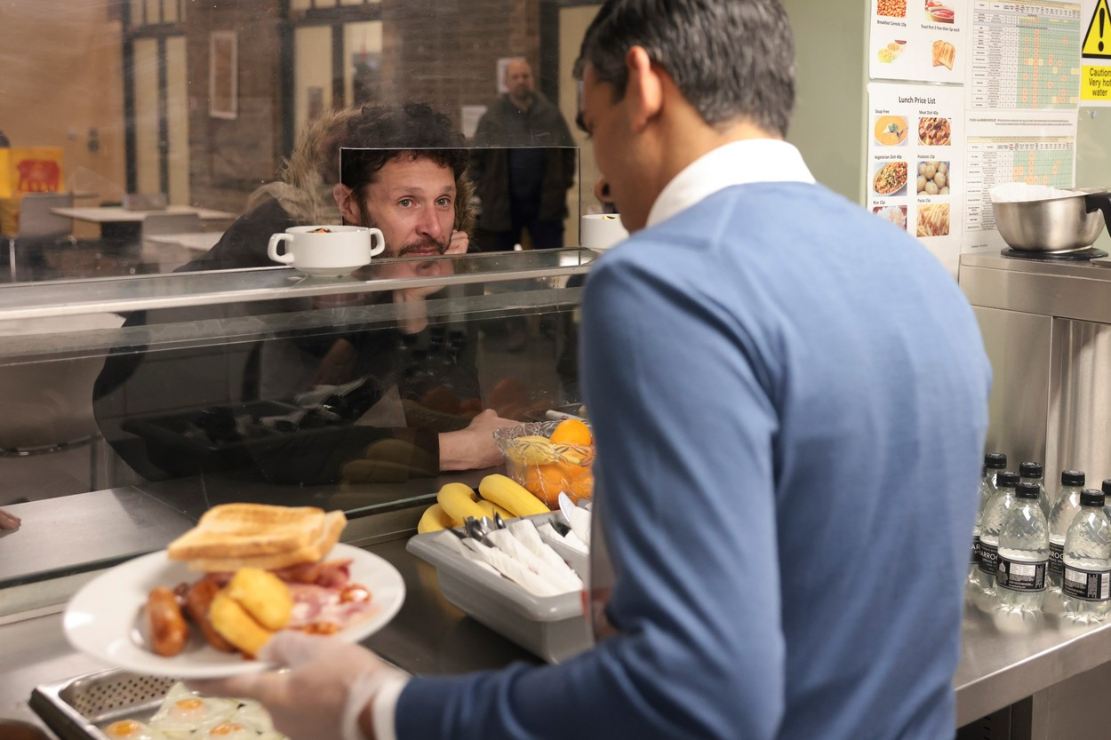 "That's exactly what I'm trying to do," Rishi Sunak responds to a homeless man at a London shelter today while serving him breakfast