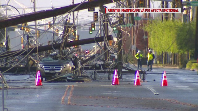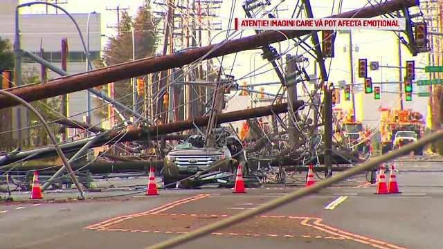 Nu mai puţin de 26 de stâlpi de electricitate au căzut în timpul incidentului ca nişte piese de domino, iar echipele de intervenţie se chinuie şi acum să repare daunele.