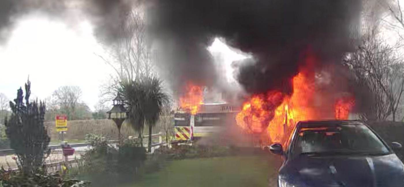 Scene șocante au fost surprinse pe o stradă din Staffordshire, în Marea Britanie. O ambulanță privată a fost curpinsă de flăcări la doar câteva secunde după ce pacientul a fost lăsat acasă. Momentul a fost surprins de camerele de supraveghere din zonă.