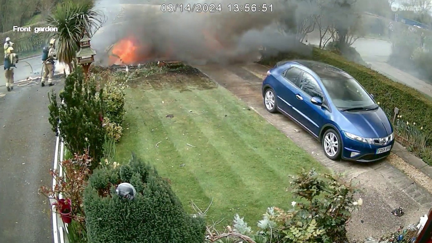 În imagini se observă cum asistenta medicală ia pacienta în vârstă de 91 de ani, aflată în scaun cu rotile, și o duce în siguranță la locuința acesteia, în timp ce din capota ambulanței iese fum. În doar câteva secunde, vehiculul a fost cuprins de flăcări și a explodat, scrie The Sun.