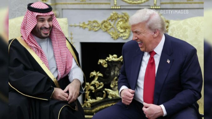 Jurnalistă ABC News: Domnule președinte, e normal ca familia dumneavoastră să facă afaceri în Arabia Saudită în timp ce sunteți președinte? Nu există aici un conflict de interese? Alteță Regală, serviciile secrete americane au stabilit că ați orchestrat asasinarea brutală a unui jurnalist. Iar familiile victimelor din 11 septembrie 2001 sunt furioase că vă aflați aici, în Biroul Oval.