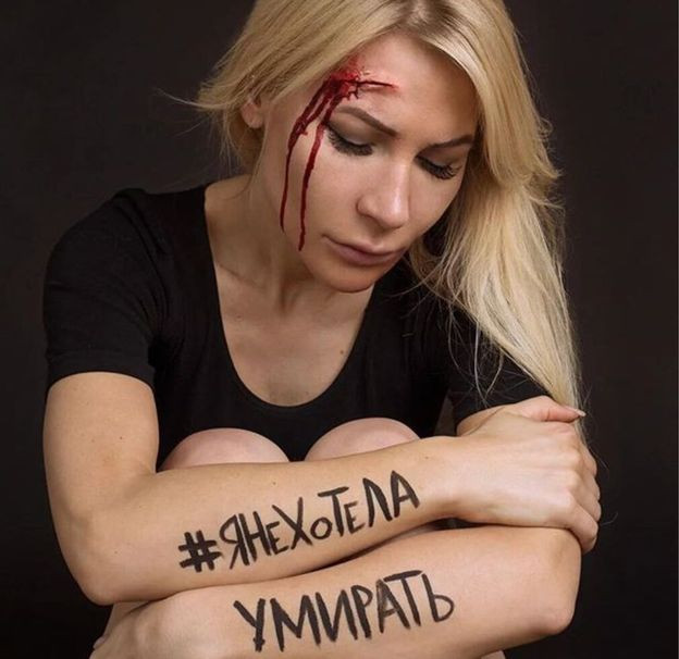 Mesajul ei spune povestea Olgăi Sadykova, care a fost ucisă de soțul ei pe 8 iulie în Kumysnoye. Ea a fost înjunghiată în fața băiatului lor în vârstă de opt ani.