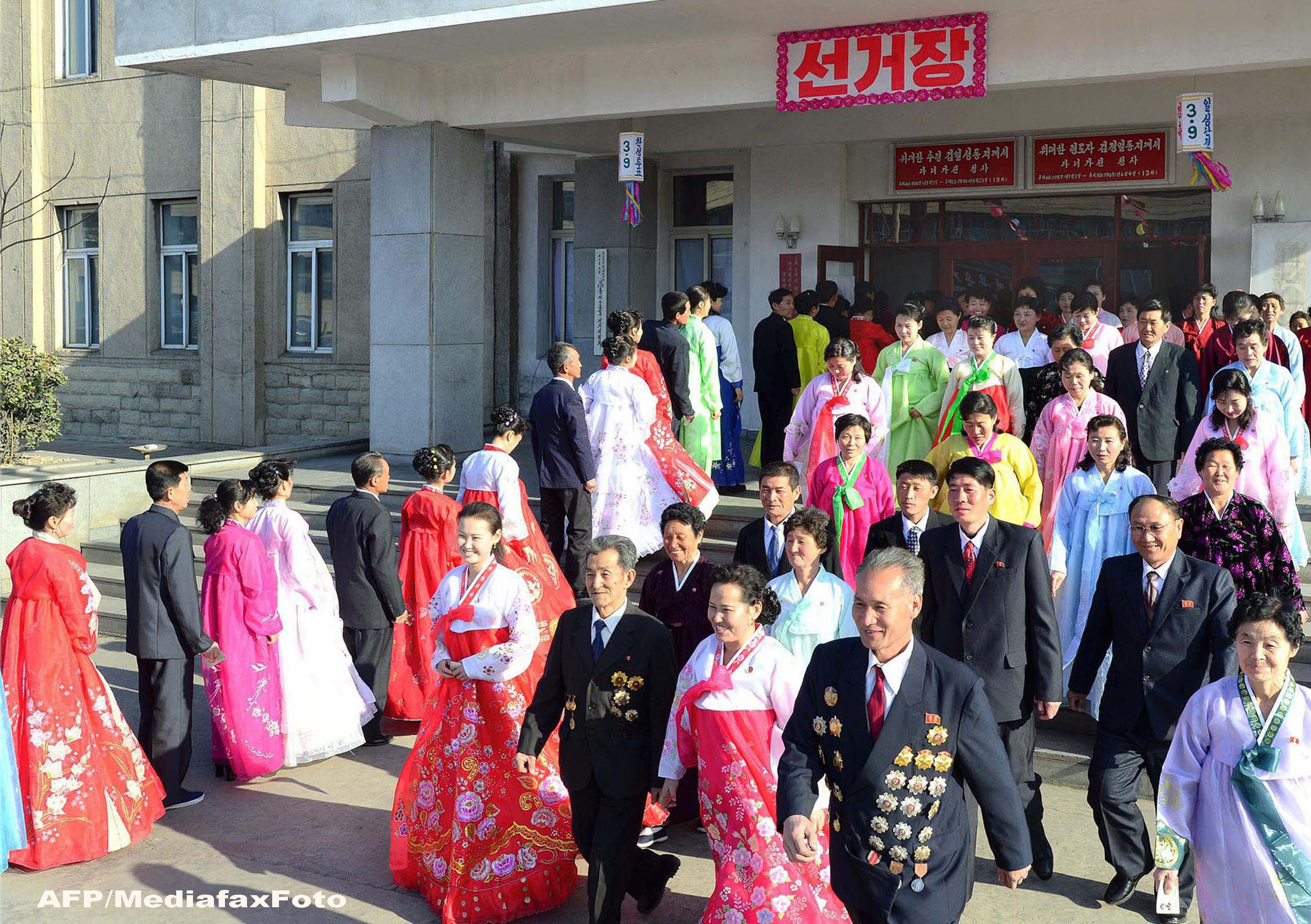 Alegatorii, "nebuni de bucurie", s-au grabit spre birourile de vot din intreaga tara, unii dansand, altii cantand in onoarea liderului Kim Jong-un, a anuntat agentia publica KCNA. Imagini difuzate de televiziunea oficiala au aratat ca sute de persoane in costume traditionale dansau pe strazi. Un singur candidat, desemnat de partidul unic, este autorizat sa solicite voturile cetatenilor in fiecare dintre cele 687 de circumscriptii. Alegatorii nu au avut de ales decat intre "da" si "nu" pe buletinul de vot.