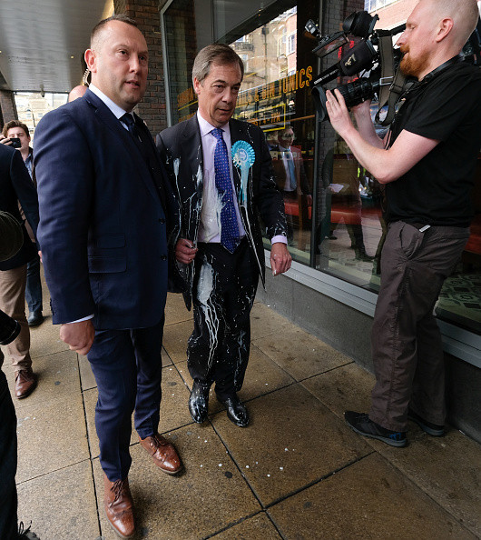 Nigel Farage, furios după ce un protestatar a aruncat un milkshake pe el. VIDEO