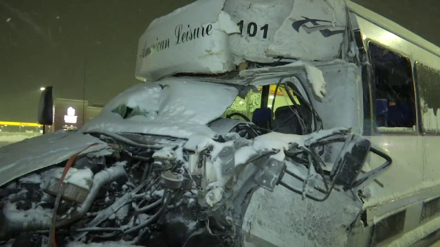 Nu au lipsit accidentele pe şosele. Mai multe persoane au fost rănite după ce un autobuz cu 30 de pasageri s-a ciocnit de un camion cu remorcă pe o autostradă din statul New York.