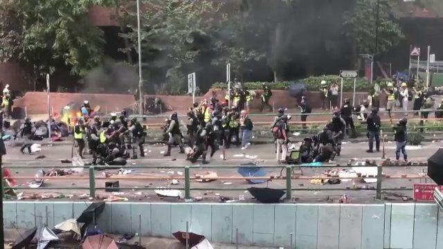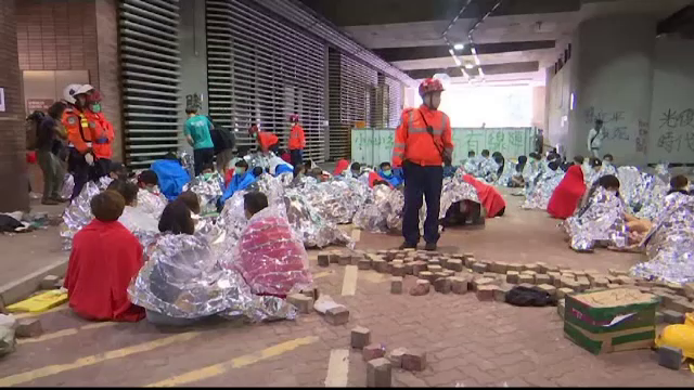 Incidentele violente au avut loc în cursul serii şi nopţii, pe străzile din jurul universităţii din Hong Kong. Sute de studenţi asediaţi aici de forţele de ordine au încercat să scape cu fuga.