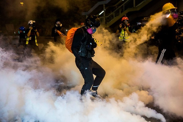 Ciocniri au avut loc, sâmbătă seara, între protestatari radicali şi poliţişti în cartierul Tsim Sha Tsui. Poliţia a tras mai multe salve de gaze lacrimogene în faţa unei secţii de poliţie pentru a-i respinge protestatari.