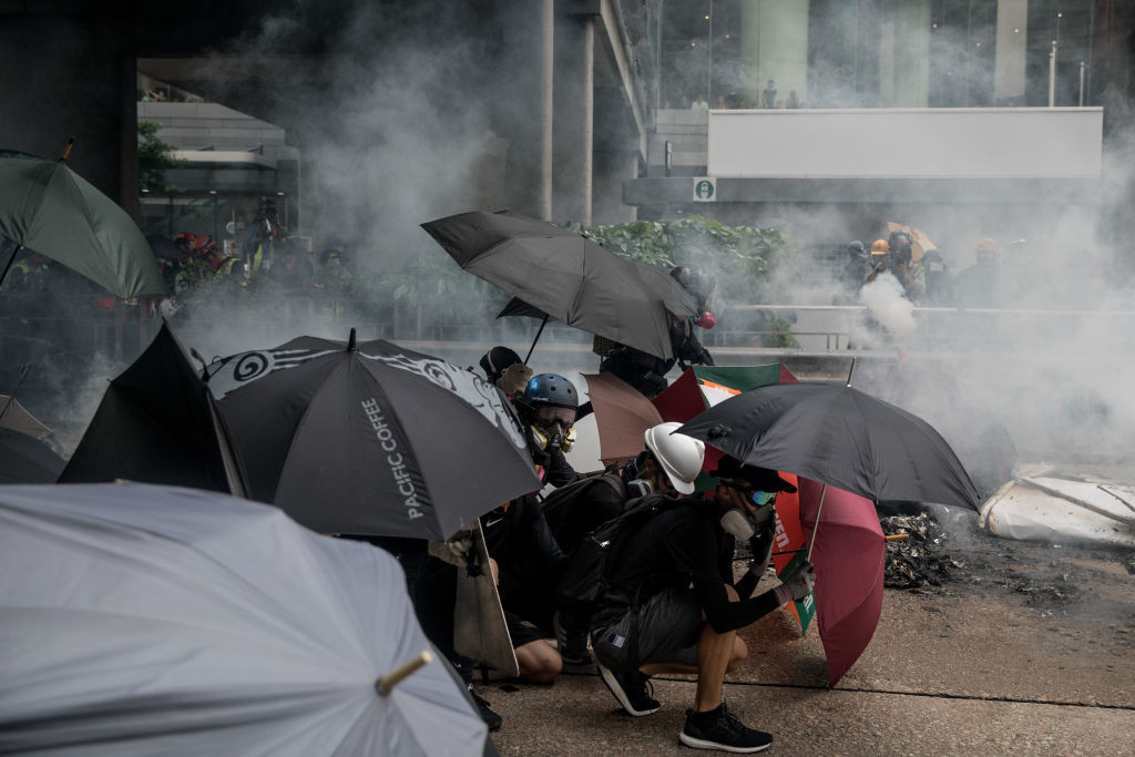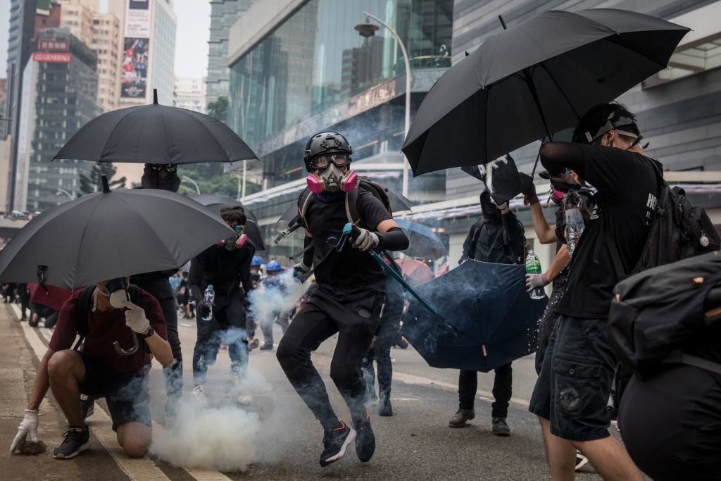 O parte dintre manifestanţi au invadat Harcourt Road, o mare arteră care traversează cartierul central al Amiralităţii, şi mici grupuri au atacat clădirea Biroului de legătură cu guvernul central chinez.