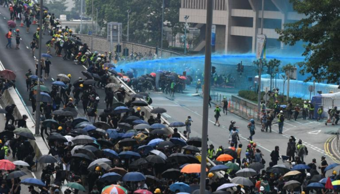Noi proteste la Hong Kong. Poliția a folosit tunuri de apă cu colorant albastru