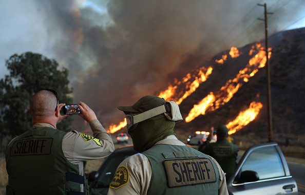 Amanda Starrantino, corespondent KCBS: „Ne aflăm la est de autostrada 5, lângă lacul Hughes. Lacul Hughes este locul de unde a pornit incendiul. Fumul se îndreaptă spre acele cartiere, iar în acest moment focul mistuie vegetația și tufișurile chiar lângă lac. Este foarte, foarte uscat acolo, dar îngrijorarea este că o mulțime de case se află în zona spre care bate vântul. Direcția în care vedem că se duce fumul este în spatele canioanelor Sloan și Haley, Hillcrest și toate cartierele de acolo."