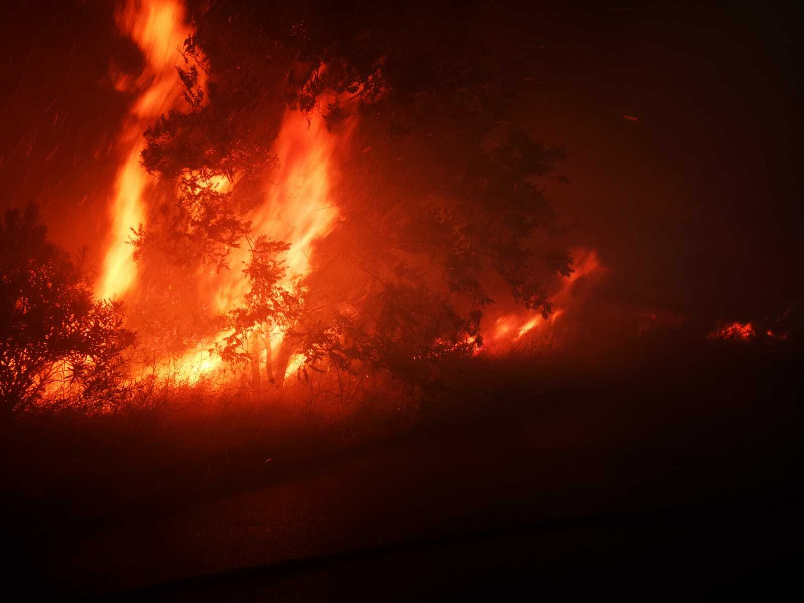 Focul, amplificat de un vânt puternic, a dus de asemenea la închiderea unor drumuri.