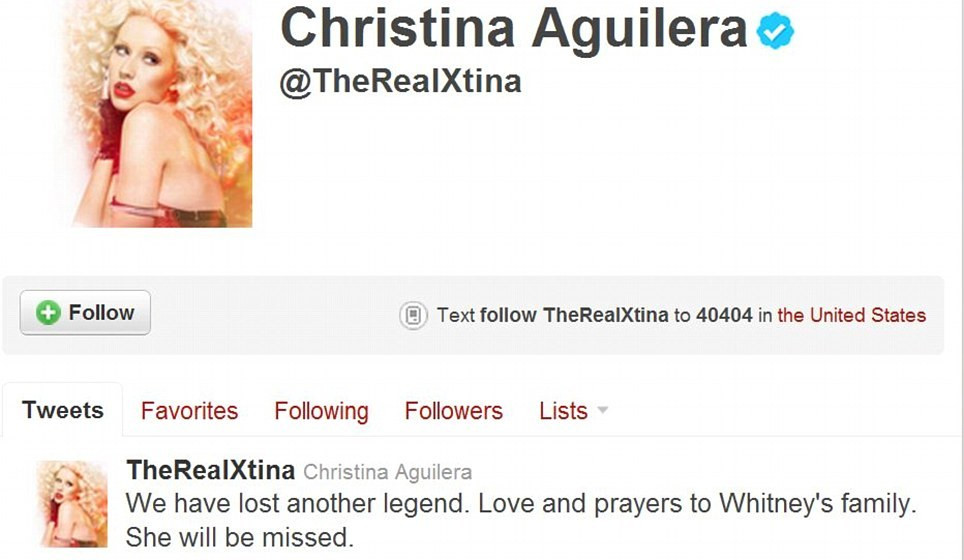 Mariah Carey, care a cantat in duet cu vedeta in anul 1998 declara: “Sunt induratata si plang moartea socanta a prietenei mele, incomparabila doamna Whitney!...Nu va fi uitata niciodata si va ramane una din cele mai bune voci din lume.”