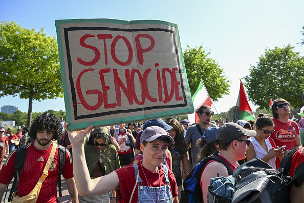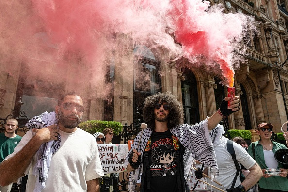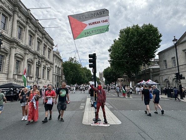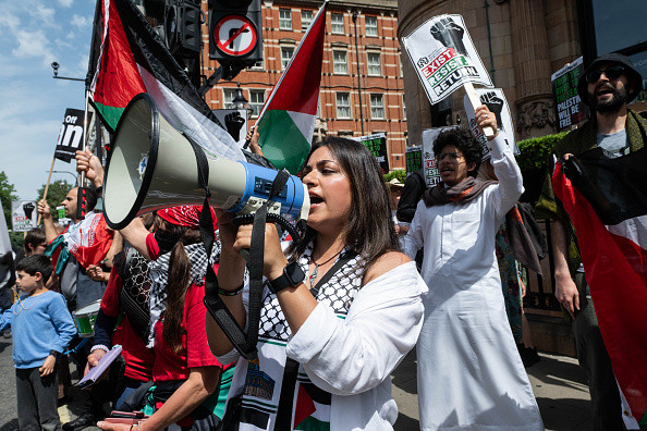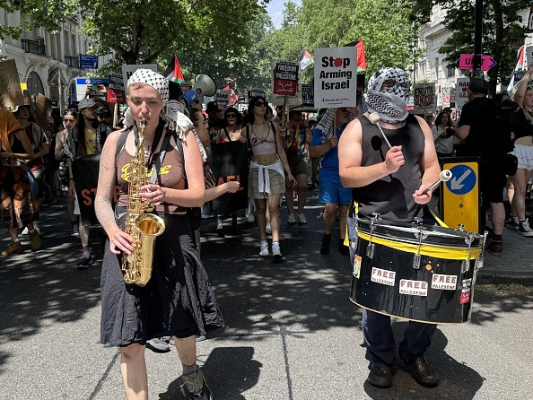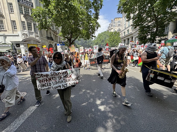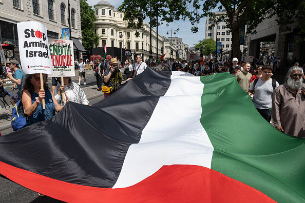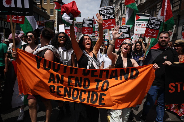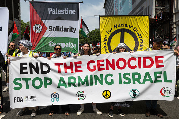 Grupul Palestine Solidarity Campaign, organizatorul manifestaţiei, îndeamnă guvernul britanic "să înceteze să înarmeze genocidul".
