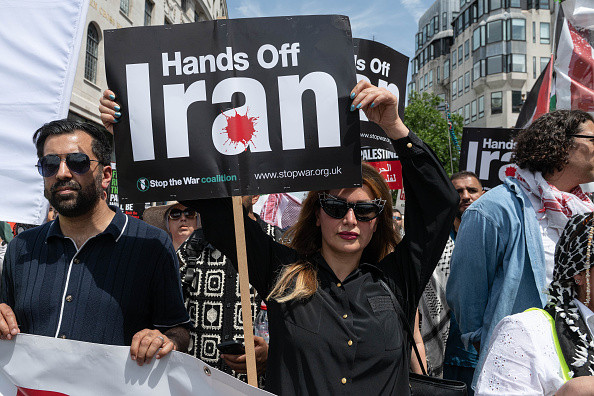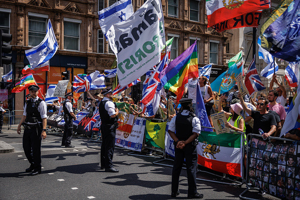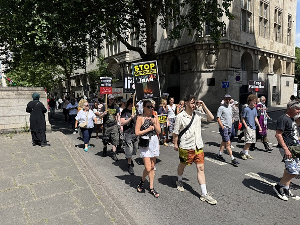 "Nu vă atingeţi de Gaza!", "Nu vă atingeţi de Iran!" se putea citi pe pancarte purtate de manifestanţi în capitala britanică. Mulţi scandau "Eliberaţi Palestina!".