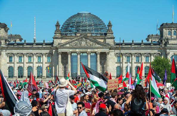 Zeci de mii de persoane au manifestat sâmbătă la Londra şi Berlin în susţinerea palestinienilor din Fâşia Gaza, îndemnând guvernele celor două ţări să înceteze să înarmeze Israelul, informează agenţiile de presă internaţionale.