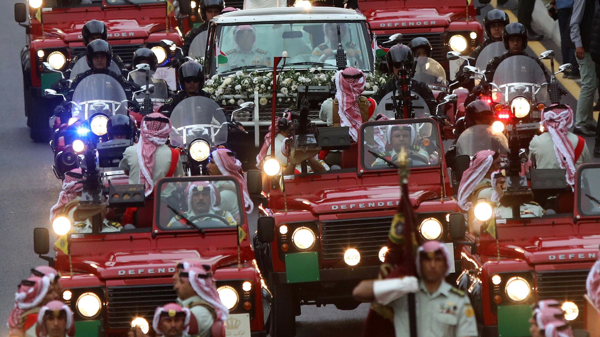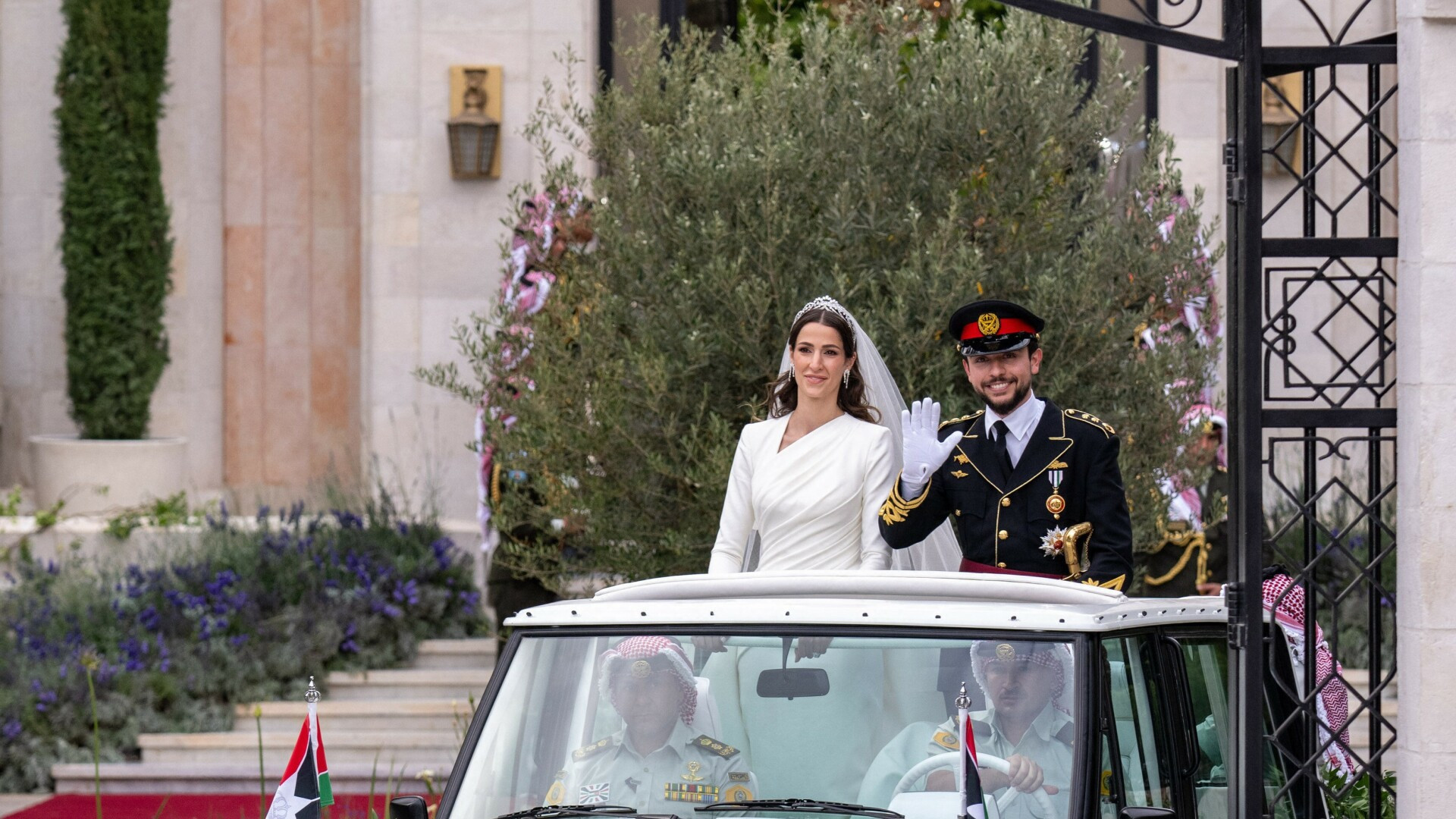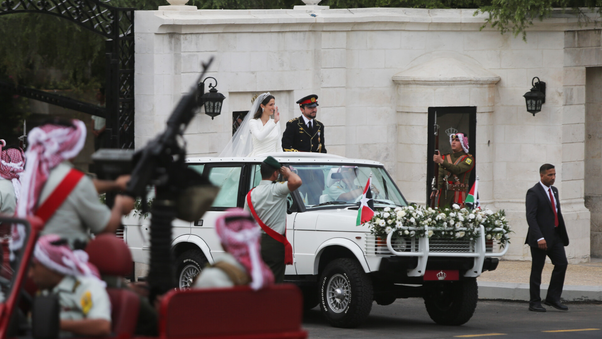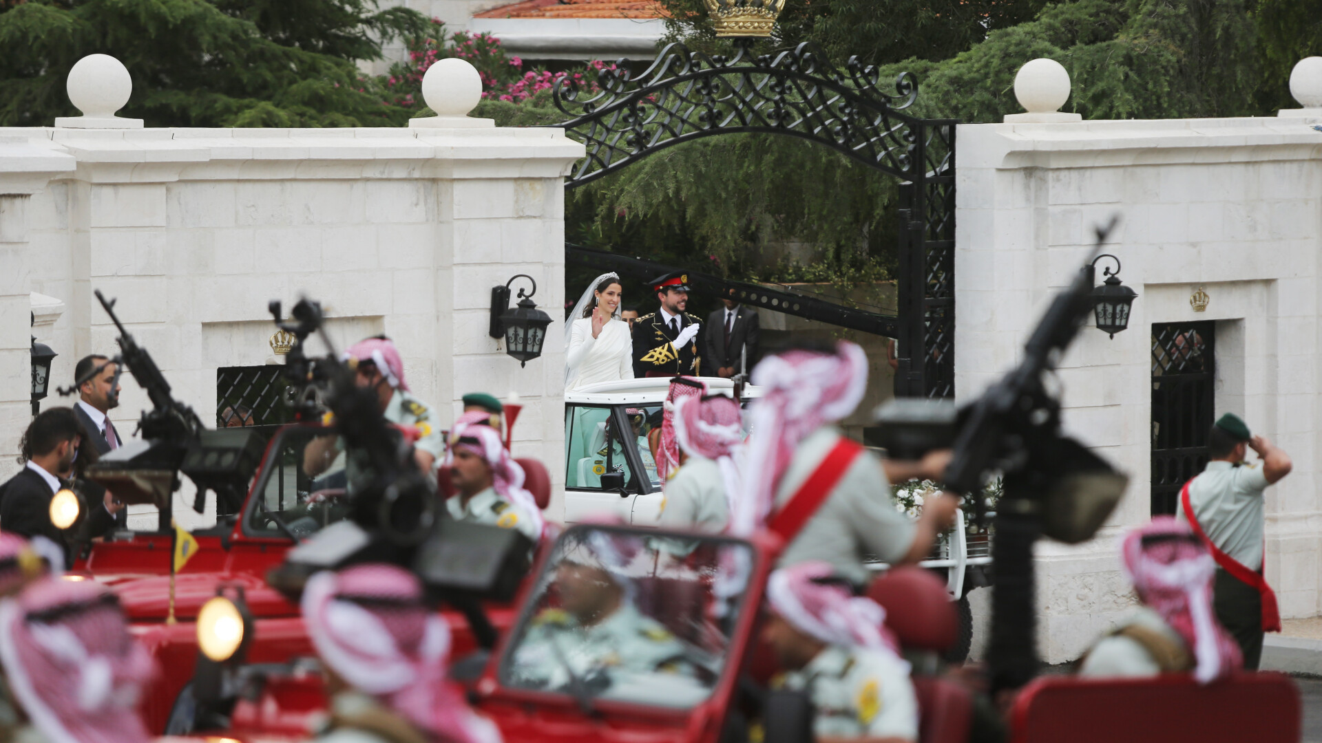După ceremonie, o procesiune de jeep-uri roșii, folosită la fiecare eveniment important din istoria regatului Hașemit, i-a adus pe tinerii căsătoriţi la un alt palat, unde este organizată petrecerea.